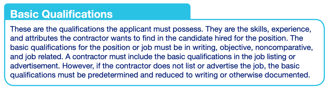 So how do we create these objective, noncomparative and job related requirements? Noncomparative means we are not comparing candidates to each other. We're merely comparing them to the expectations of the role. A recruiter MUST compare the person's resume to the JOB - and it must be objective and measurable.